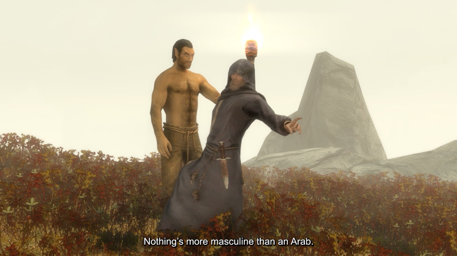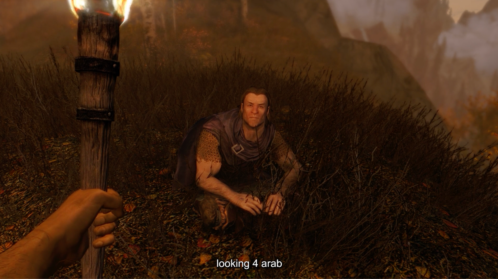 Dans Skyrim, il suffit de savoir bricoler pour exploiter la malléabilité de l’interface et troubler un peu les scripts depuis l’intérieur. A partir de patchs en open source (suite de mises à jour prises en charge par les utilisateur·rices pour réparer les bugs), Théo fait du modding, modifie lui-même les paramètres du jeu pour contraindre la narration. Il suspend la quête de son personnage, crée des moments de réflexion et de repos, des expériences de vie alternatives. Ici, les guerriers dansent dans la rivière et dorment l’un contre l’autre quand ils sont épuisés. Ainsi utilisé, le cadre science-fictionnel dévoile la mécanique du fantasme et permet d’interroger la teneur de nos interactions sociales. Le lore fantastique devient, lui, un espace de médiatisation de soi aux catégories plus fluides et aux expériences choisies.