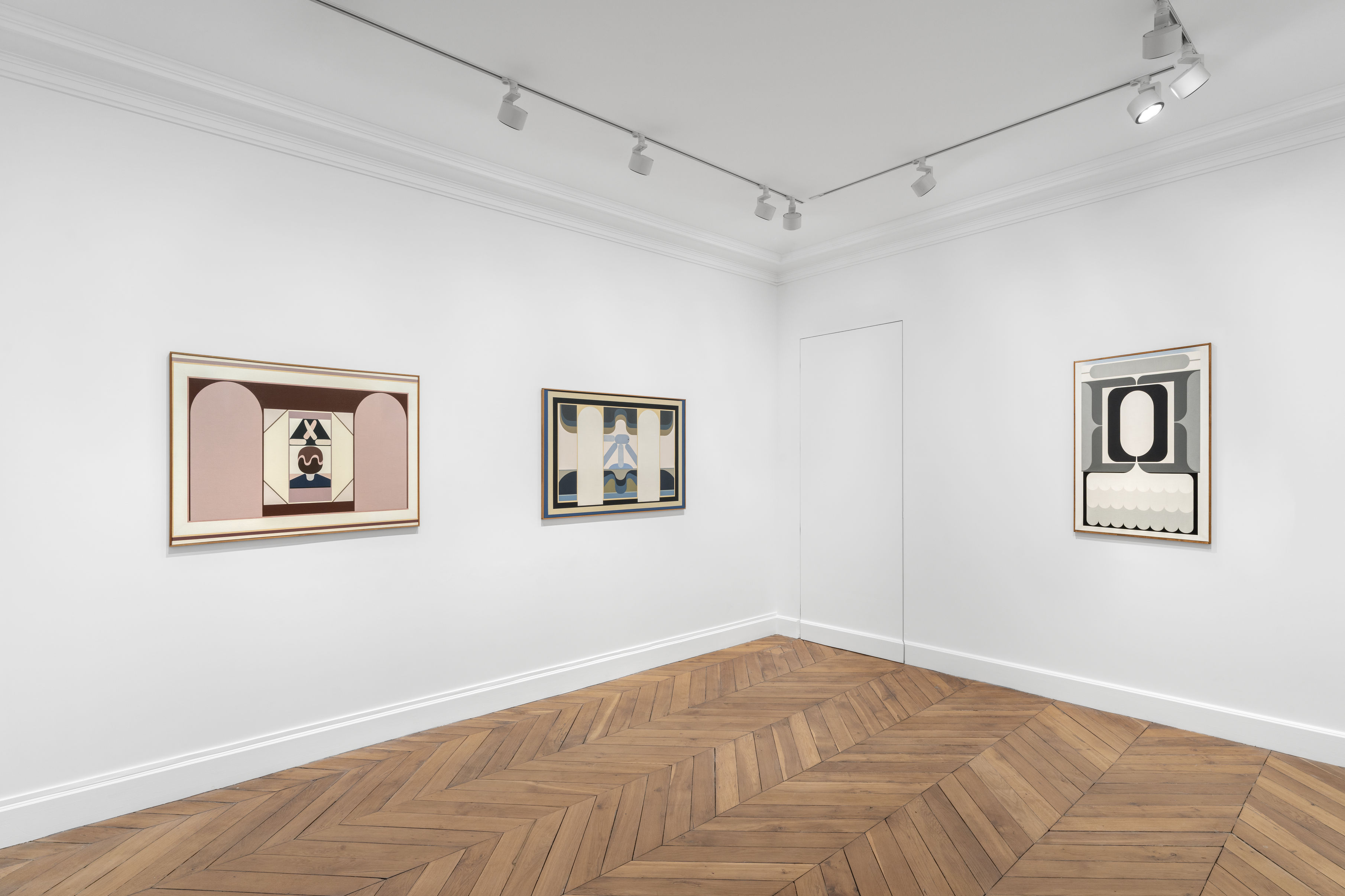 Des tableaux de format modeste, datant des années 1960 au milieu des années 2010, témoignant de l’intérêt de l’artiste pour l’architecture et l’ornement mais aussi de son sens de l’humour subtil. La patience, le goût du jeu, se laissent déchiffrer dans cette peinture de signes usant de formes géométriques. Tandis que la palette de couleurs (ocres, gris sourds, roses tendres…), évoquant la pâle lumière du Nord, va en s’éclaircissant, l’exécution minutieuse semble au service de desseins secrets, qui invitent à la contemplation.