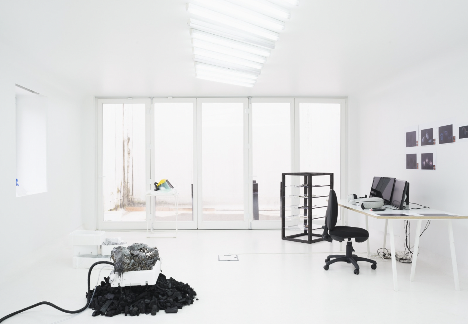 Les instruments électroniques font des bruits d’instruments électroniques et tout paraît soudain très sérieux. Sur l’un des écrans, escape_charon.exe. Les ordinateurs guettent les lieux de latence où le monde des vivantes et le monde des mortes se percutent et se déversent l’un dans l’autre. Ces collisions sont silencieuses et ne durent jamais longtemps. Alors les femmes en combinaisons se préparent et plongent de l’autre côté – dans le marais elles disent encore.