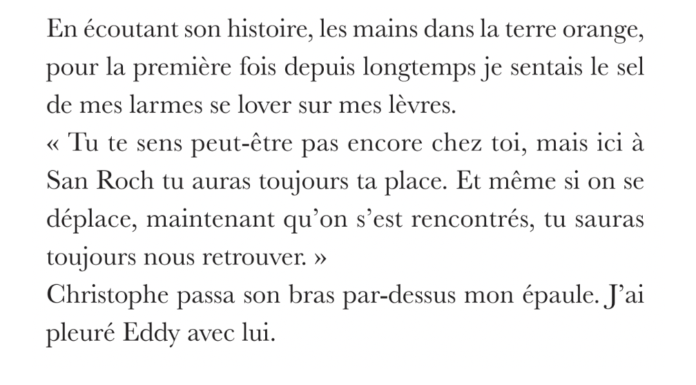 Alors je me promets de continuer de croire à nos utopies. Elles existent même si elles sont fragiles, même si elles sont modestes et paradoxales, cachées et transitoires. Ensemble, en chiens-voyageurs, on en fait des mythes – veillés par des saints travestis – pour les protéger et les rendre immortelles.
